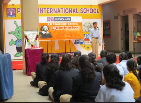 Embarking on an unforgettable literary journey, the Literature Fiesta Culmination Event commemorates the birth anniversary of William Shakespeare in a grand celebration of words and artistry. From the dignified escorting of esteemed guests to the reverential garlanding of Shakespeare's portrait, every moment resonated with homage and admiration. The vibrant welcome dance by Grade I & II set the stage for a showcase of the finest performances in poem reading and storytelling, culminating in a captivating skit that transported the audience into the realms of literature.