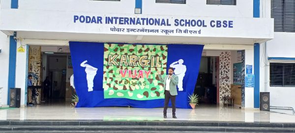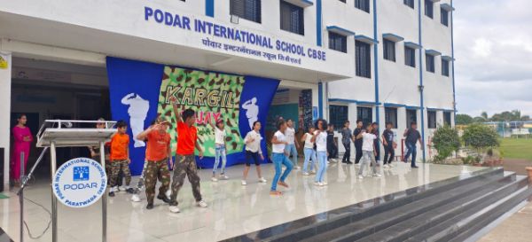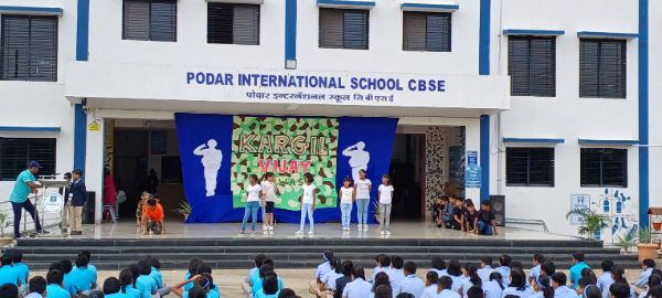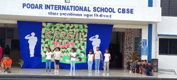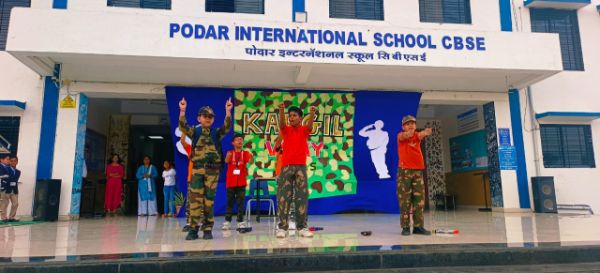 Podar International School, Paratwada celebrated Kargil Vijay Diwas to commemorate the victory of Operation Vijay and to honour Kargil heroes, who sacrificed their lives for the motherland on 26 July,1999. A special morning assembly was organised on theme of Kargil victory day. Students of Grade IV hosted an assembly who were dressed as soldiers and performed an act on the life of soldiers to pay tribute to the valiant heroes of Kargil. The assembly theme highlighted the achievements of Indian soldiers and saluted the real heroes who protect and safeguard the Indian nation. Principal Mr. Atul Patil sir expressed their views to remember the real heroes of our nation and shared with the students the memorable life of Kargil martyrs. At last, students were appreciated for the initiatives and efforts of their wonderful performances.