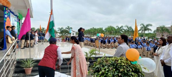 The Tricolour was hoisted on the grounds of the school by Principal sir Mr. Atul Patil and Honorable Chief Guest Divya Bharathi, Indian Forest Service officer.